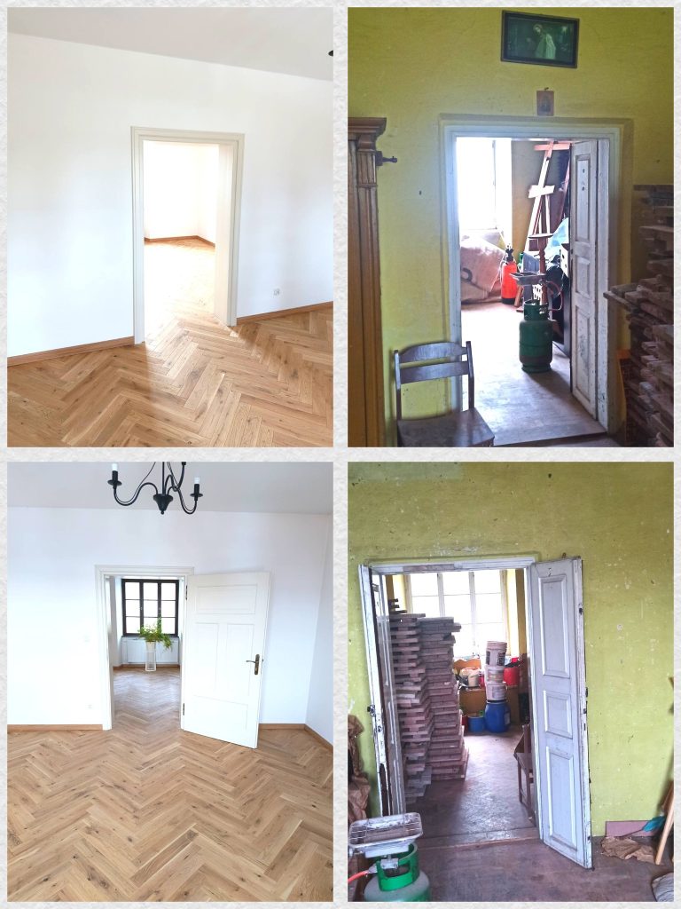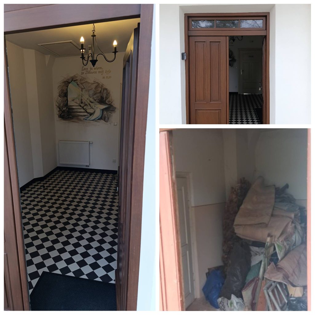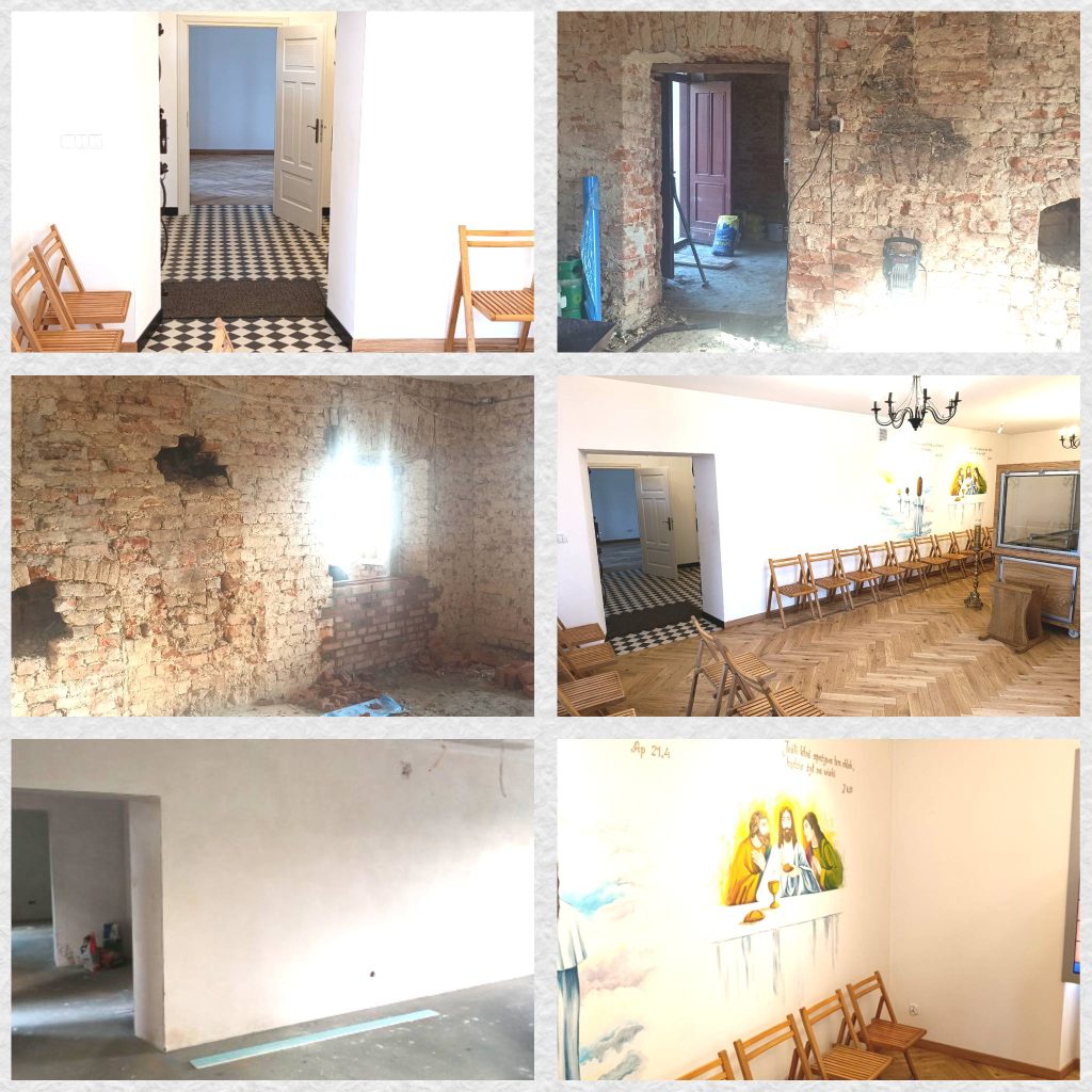 Poniżej, przedstawiamy zdjęcia wykonane zarówno przed remontem jak i po remoncie. Choć jeszcze wymaga stabilizacji gruntu na której została wzniesiona, odnowienia elewacji i wyposażenia, efekt końcowy już jest naprawdę imponujący.
