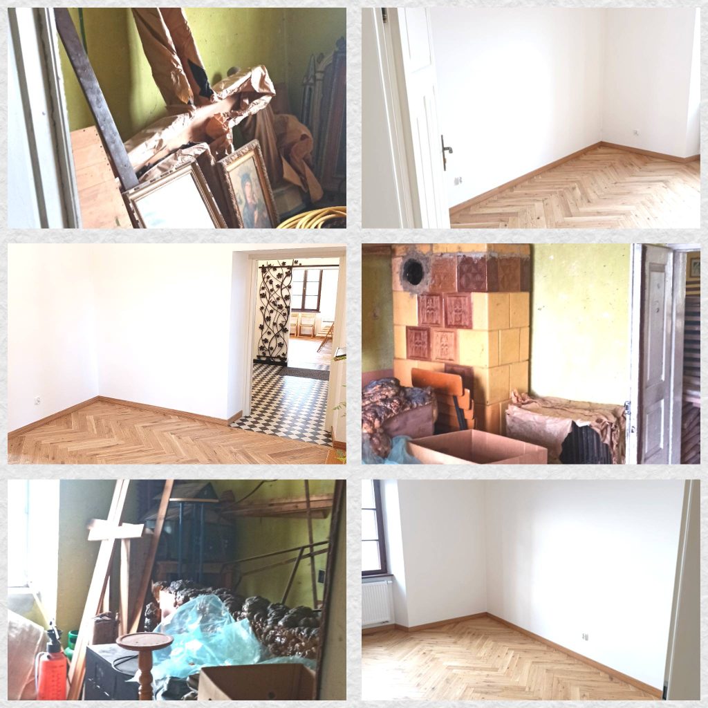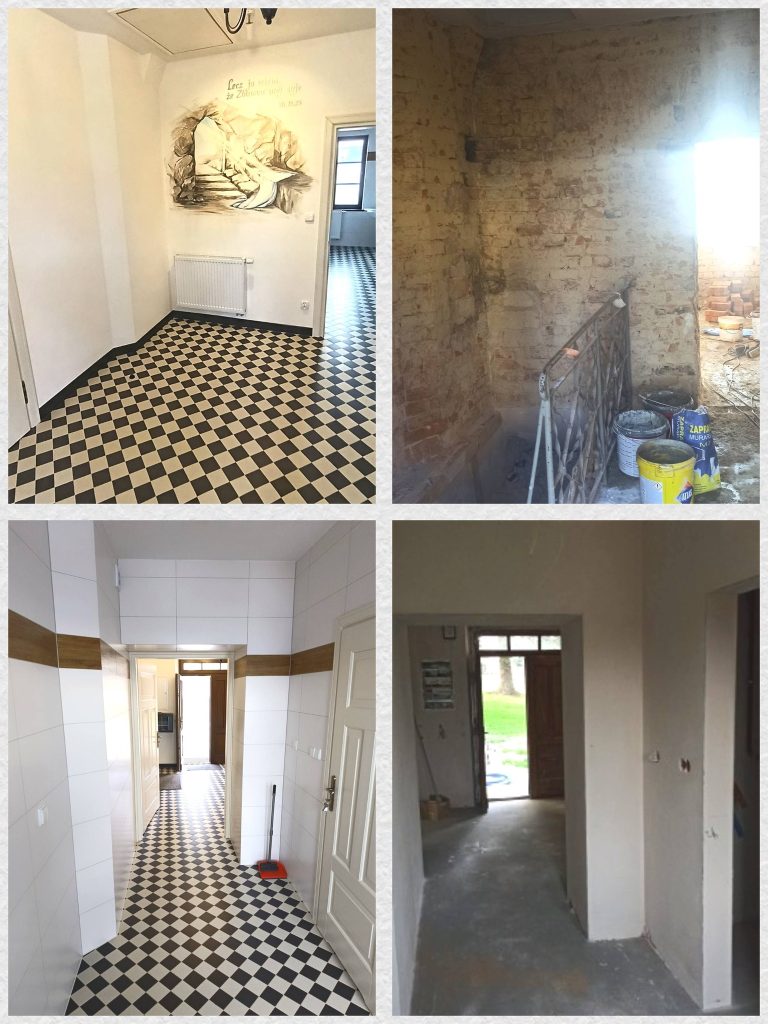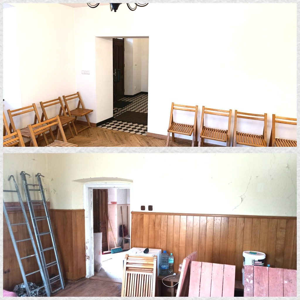 W ramach prac, została wymieniona cała instalacja elektryczna, grzewcza i wodno-kanalizacyjna, zostały położone nowe wylewki i podłogi, wymieniono okna i drzwi, przygotowano oraz utwardzono podjazd. Odnowione zostały także dwa pomieszczenia znajdujące się w dolnej części, które kiedyś pełniły rolę kuchni dla Izby Porodowej.