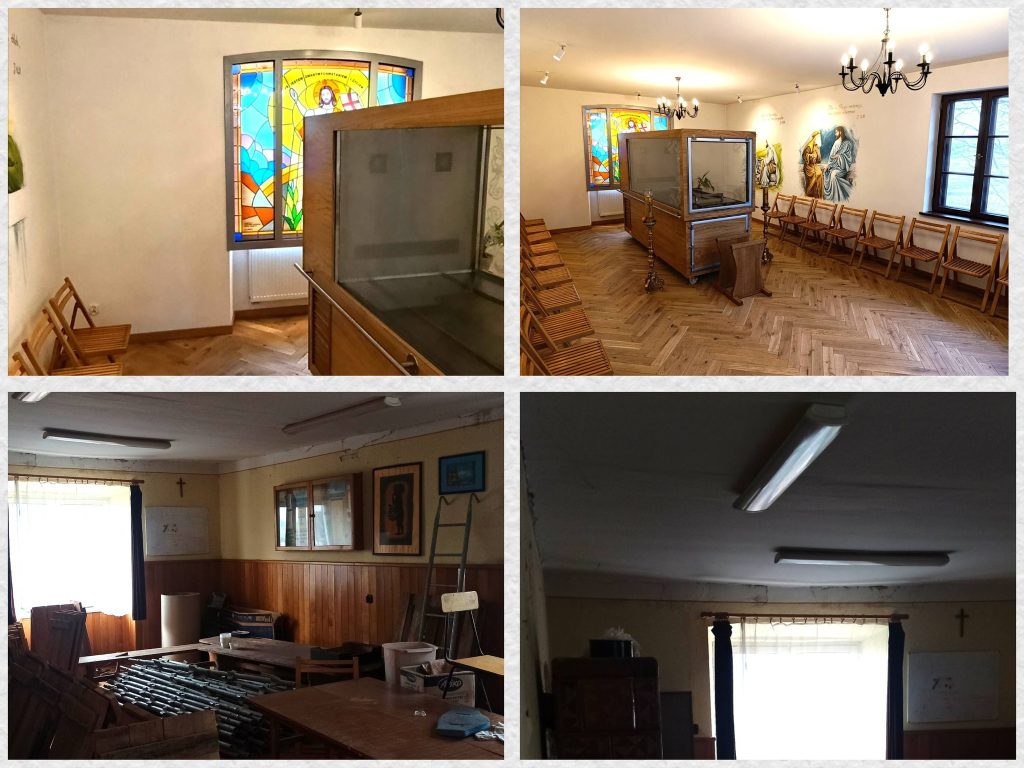 Dziś, w jednym z pomieszczeń, Parafianie mogą gromadzić się na modlitwie różańcowej i godnie pożegnać swoich bliskich zmarłych. Pozostałe pomieszczenia przeznaczone zostały na miejsca spotkań dla młodzieży. Ponadto, zostały wyremontowane toalety z których, w razie potrzeby, mogą korzystać wierni przybywający na różne nabożeństwa.